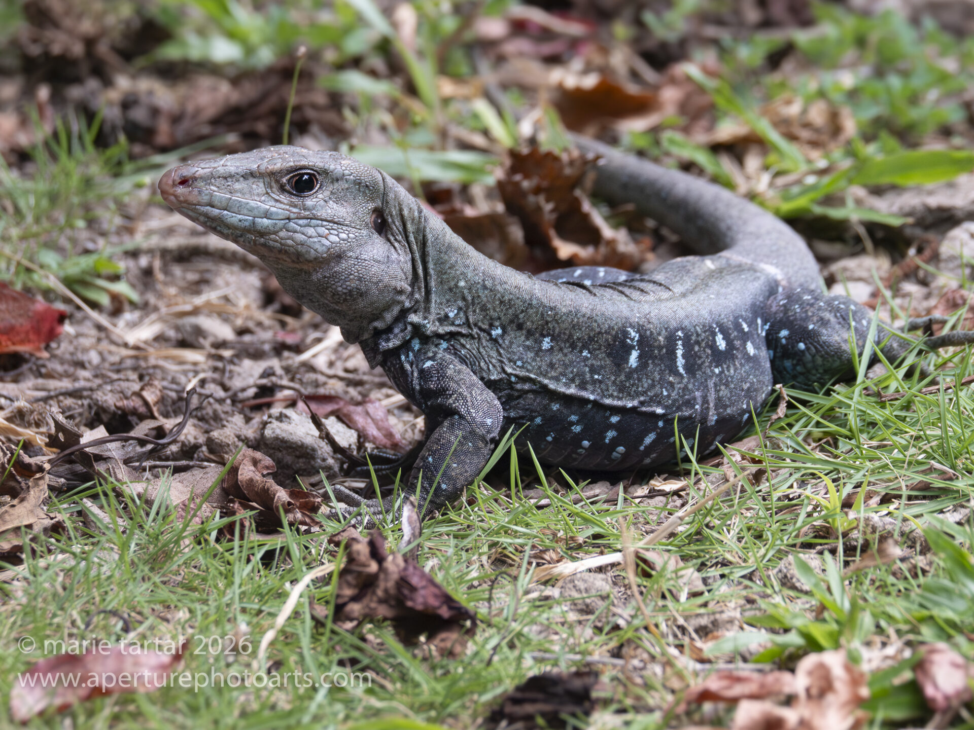 Dominican ground lizard or Dominican ameiva (Pholidoscelis fuscatus), outside our villa at Jungle Bay.