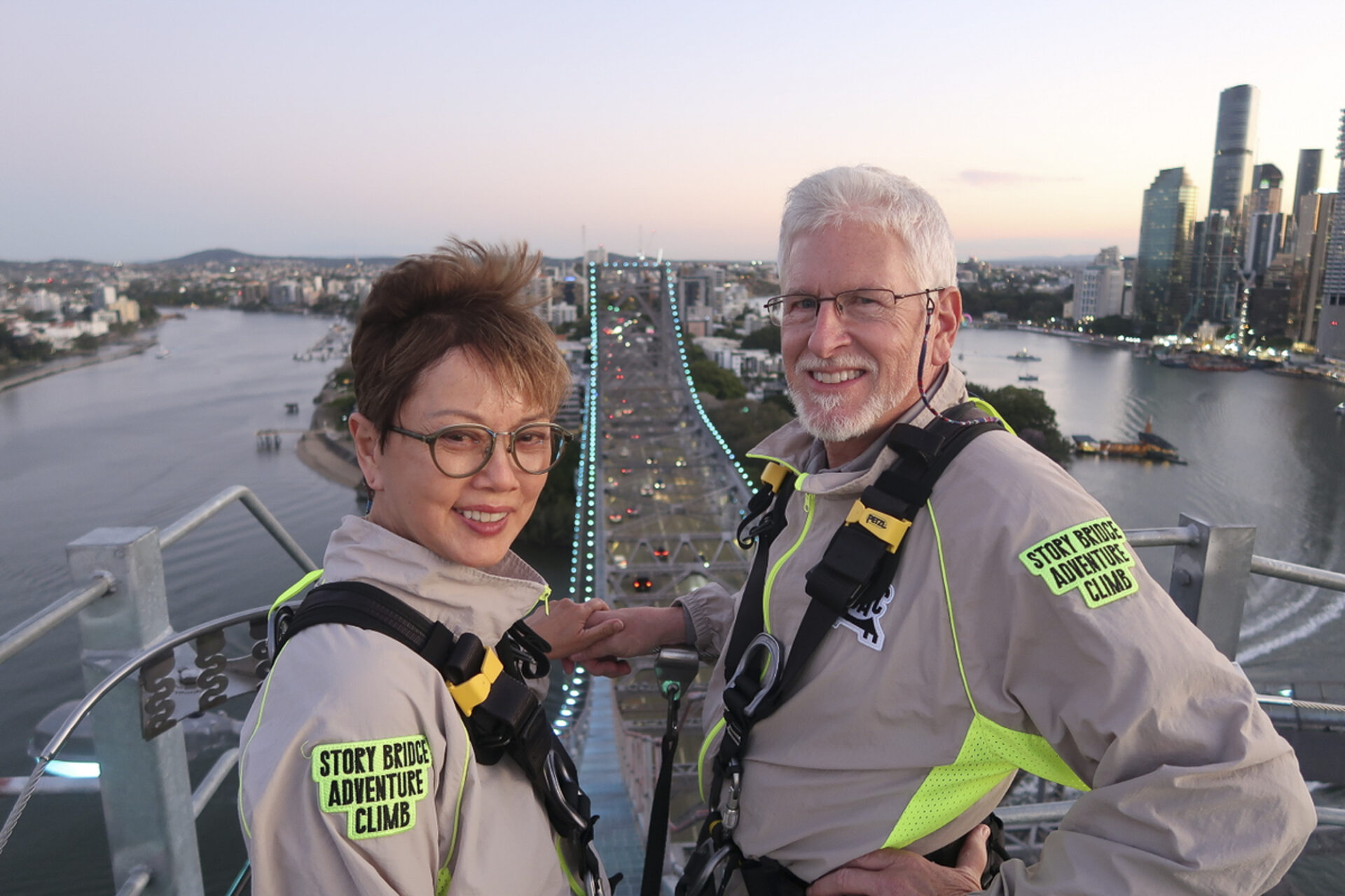 I had always regretted not doing the Harbour Bridge walk when we had the chance, passing through Sydney en route to PNG on those long-ago Chris trips. I had to twist Steve’s arm a little to persuade him to climb Brisbane’s Story Bridge with me, but he ultimately capitulated.
