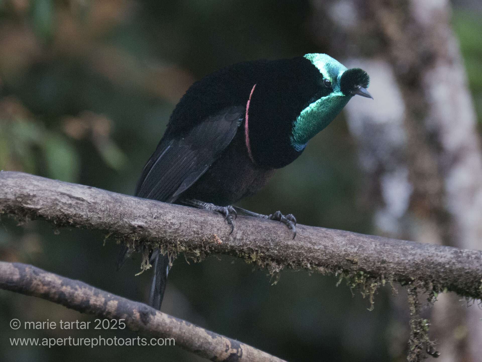 A beautiful bird of paradise, the male ribbon-tailed astrapia, at Kumul Lodge in PNG. (Shaw Mayer’s astrapia (Astrapia mayeri))